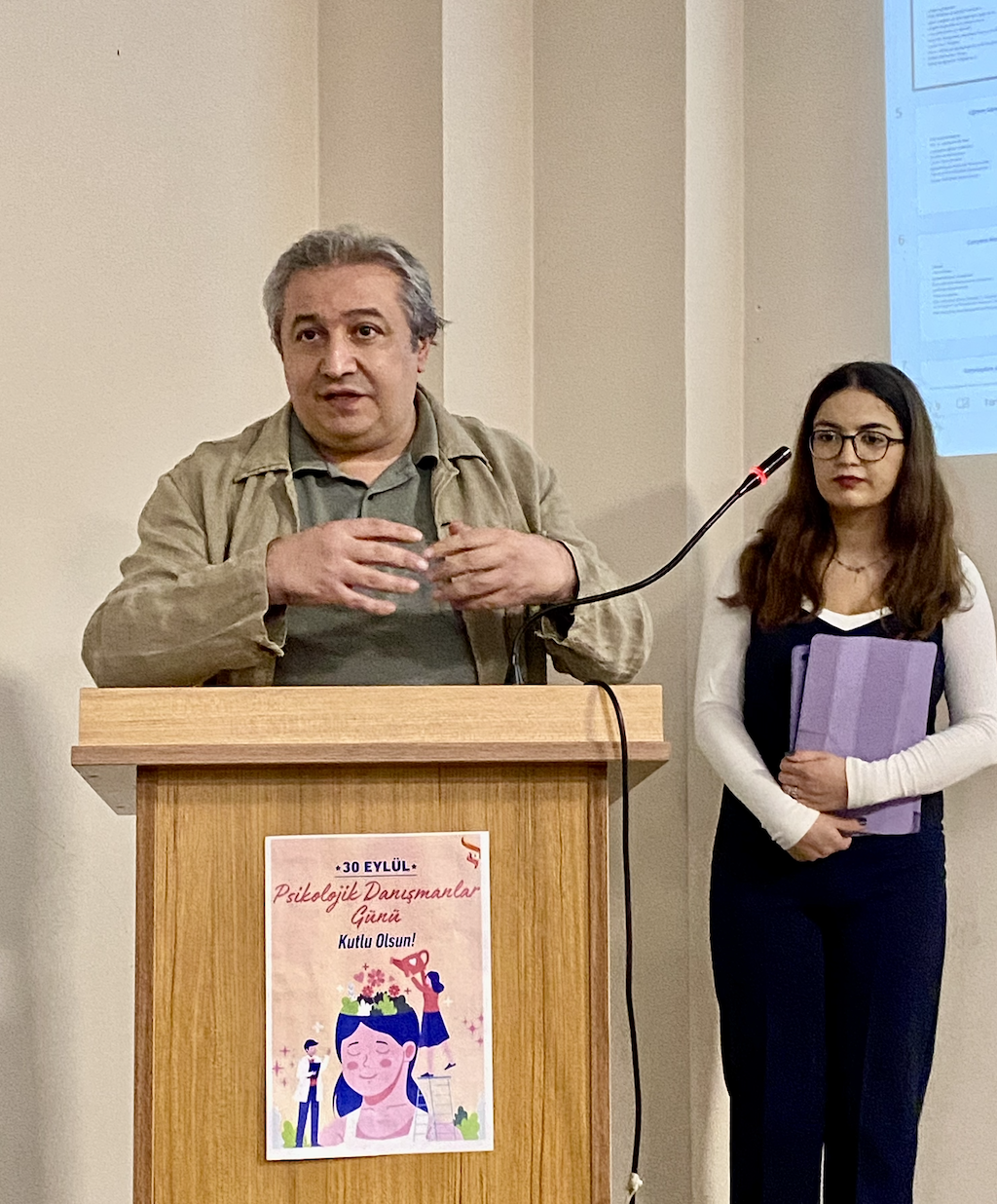 Rehberlik ve Psikolojik Danışmanlık Ana Bilim Dalımız tarafından Cengiz Aytmatov Amfisinde 30 Eylül Ulusal Psikolojik Danışmanlar Günü etkinliği düzenlenmiştir. Etkinliğe Eğitim Fakültesi Dekanı Prof. Dr. Güven ÖZDEM katılarak açılış konuşmasını yapmıştır. Daha sonra Prof. Dr. Enver SARI ve Doç. Dr. Levent YAYCI sunumlarını gerçekleştirmiştir.